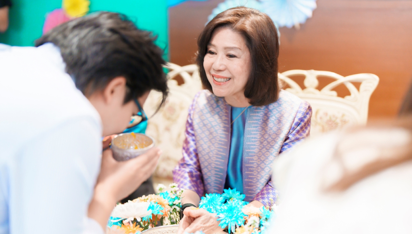 บรรยากาศภายในงานเต็มไปด้วยความอบอุ่น เริ่มด้วยพิธีสรงน้ำพระพุทธรูป ผู้บริหารอวยพรพนักงาน และพนักงานรดน้ำขอพรผู้บริหาร เพื่อความเป็นสิริมงคล ทั้งยังเติมเต็มความสุขในวันสงกรานต์ด้วยการแต่งกายด้วยผ้าไทยและเสื้อผ้าสีสันสดใส ขณะเดียวกันยังมียังมีการจัดกิจกรรมเล่นเกมจับคู่ เพื่อสร้างความสัมพันธ์ภายในองค์กร พร้อมรับของรางวัลพิเศษ โดยรายได้ทั้งหมดจากการร่วมสนุกโดยไม่หักค่าใช้จ่าย จะนำไปสมทบทุนส่งต่อเป็นพลังความรักและสร้างรอยยิ้มให้แก่สังคมต่อไป