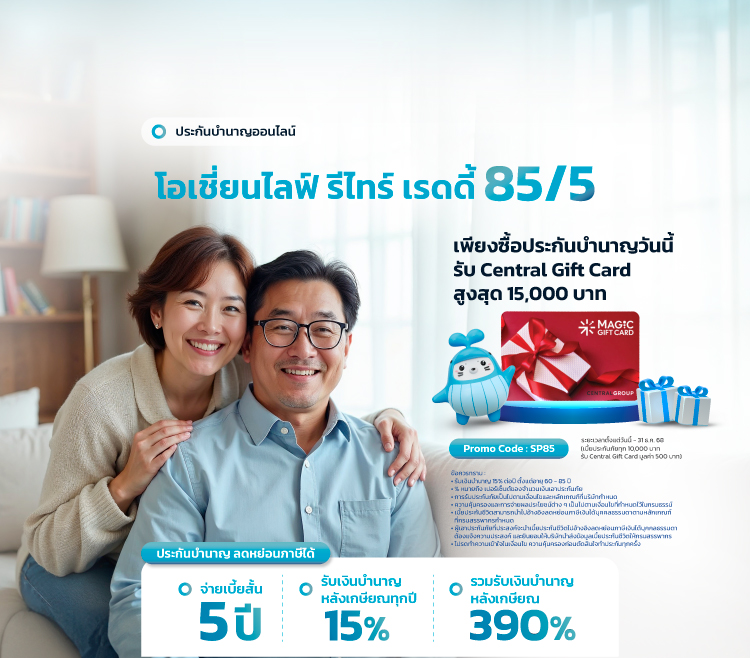 A: ผู้เอาประกันภัยจะได้รับเงินบำนาญตั้งแต่วันครบรอบปีกรมธรรม์ที่ผู้ทำประกันภัยครบอายุ 60 ปี จนถึงวันครบรอบปีกรมธรรม์ที่ผู้เอาประกันภัยอายุครบ 85 ปี โดยรับเงินบำนาญปีละ 15% ของจำนวนเงินเอาประกันภัย ณ วันเริ่มสัญญา