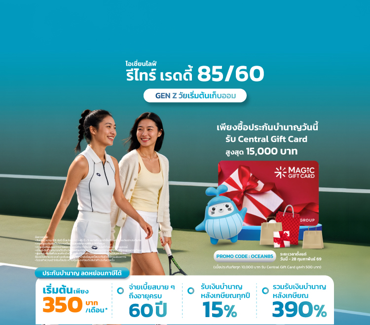 - ข้อมูลในเอกสารนี้เป็นเพียงข้อมูลเบื้องต้นของผลิตภัณฑ์ประกันภัย ผู้ขอเอาประกันภัย/ผู้เอาประกันภัยควรศึกษาข้อมูลเพิ่มเติม และทำความเข้าใจในรายละเอียดเงื่อนไขความคุ้มครอง ผลประโยชน์ และข้อยกเว้น ก่อนตัดสินใจทำประกันภัยทุกครั้ง เมื่อได้รับกรมธรรม์ประกันภัยแล้วโปรดศึกษาเพิ่มเติม