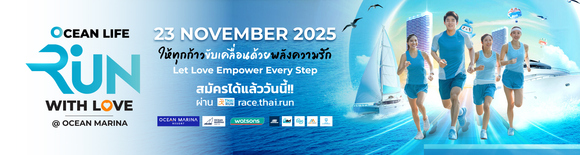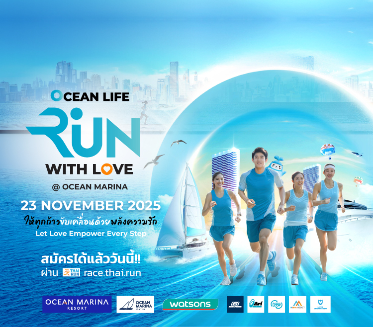 ครั้งแรกในไทย! พลาดไม่ได้กับงานวิ่งสุดเอ็กซ์คลูซีฟ สูดลมทะเลพร้อมวิวเรือยอร์ชระดับเวิลด์คลาส การันตีด้วยรางวัล Platinum 5 Gold Anchor จาก The Marina Industries Association (MIA) กับงาน OCEAN LIFE Run With Love 2025 @OCEAN MARINA