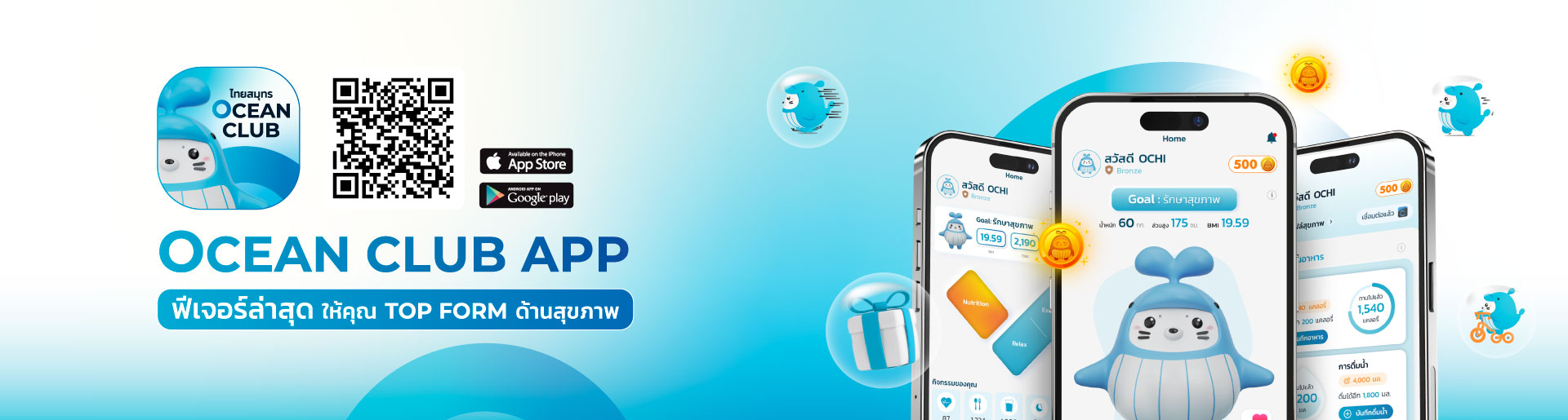 - สำหรับลูกค้า OCEAN LIFE ไทยสมุทร ที่เป็นสมาชิก OCEAN CLUB APP เท่านั้น