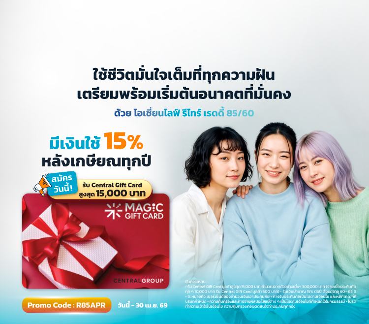 รับเงินบำนาญ 15% ต่อปี ตั้งแต่อายุ 60 - 85 ปี