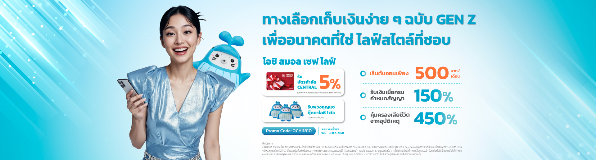 - โอชิ สมอล เซฟ ไลฟ์ เป็นชื่อทางการตลาดของ โอเชี่ยนไลฟ์ โอชิ แพลน 18/10