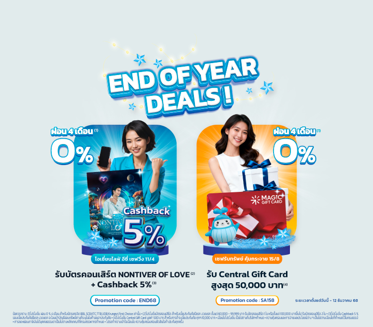 สำหรับบัตรเครดิต BBL, SCB, KTC, TTB, UOB, Krungsri, First Choice เท่านั้น